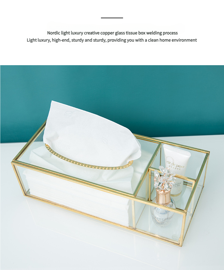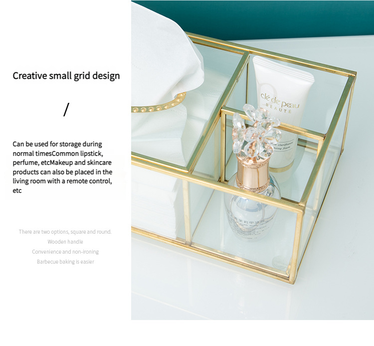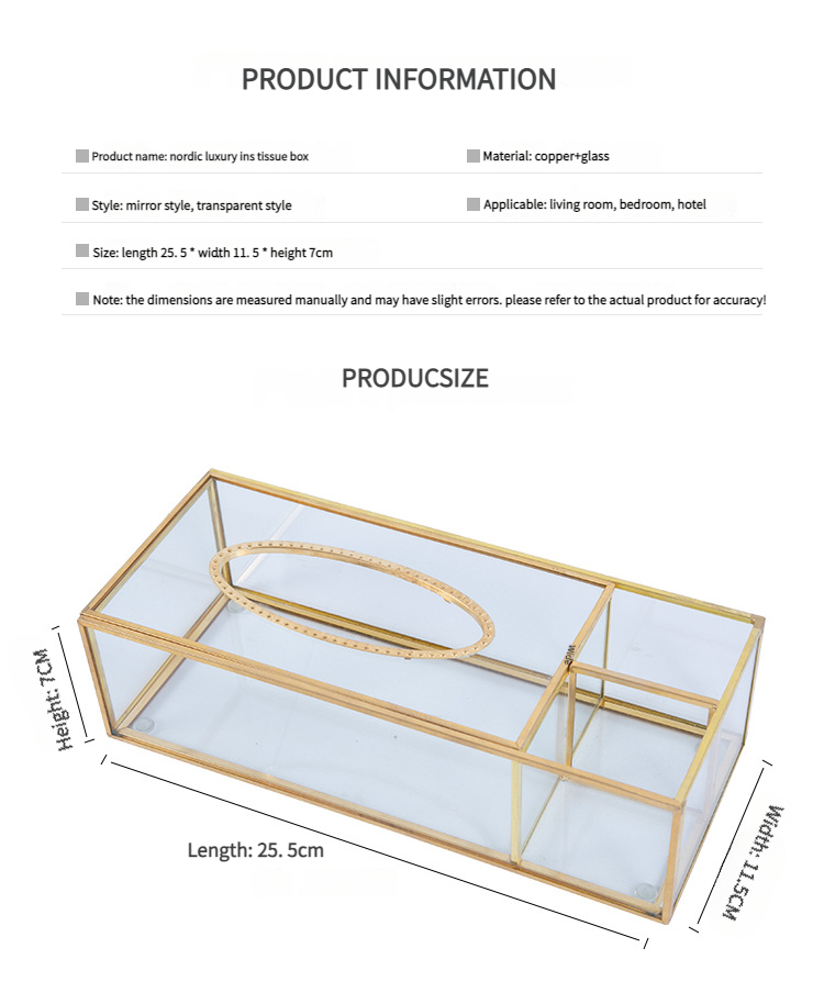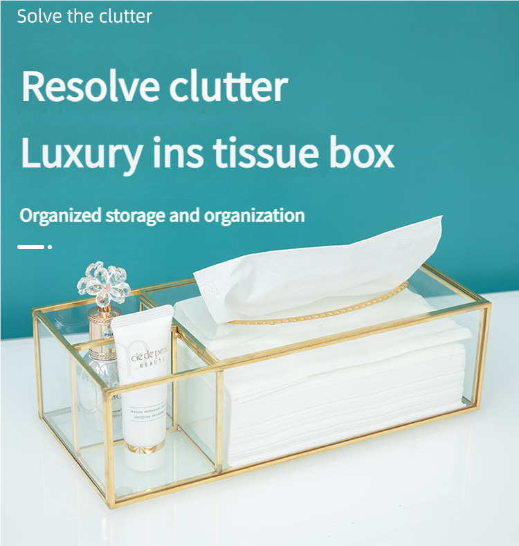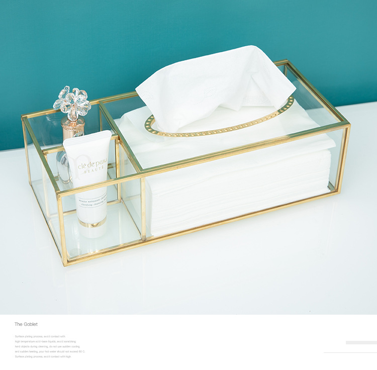 Light Luxury Brass Mirrored Glass Tissue Box – INS Creative High-end Dual-purpose Dustproof Tissue Box for Living Room & Dining Room