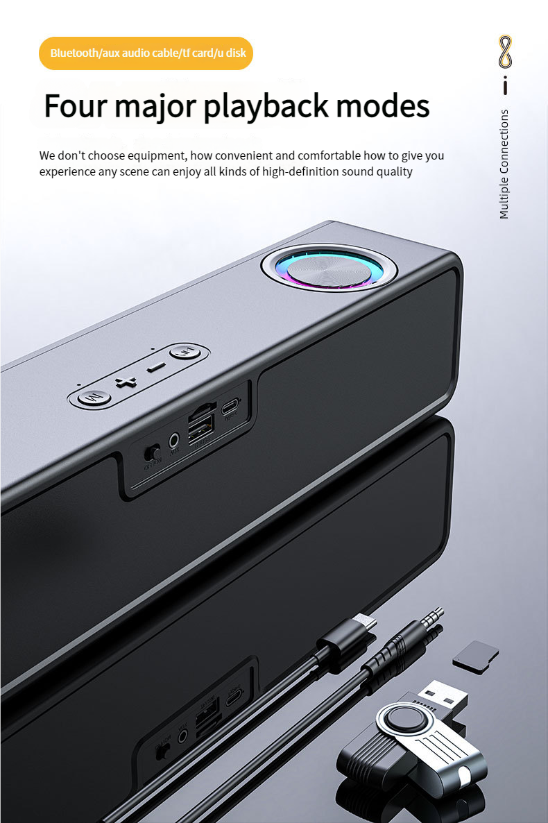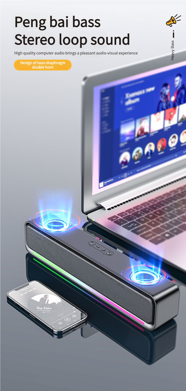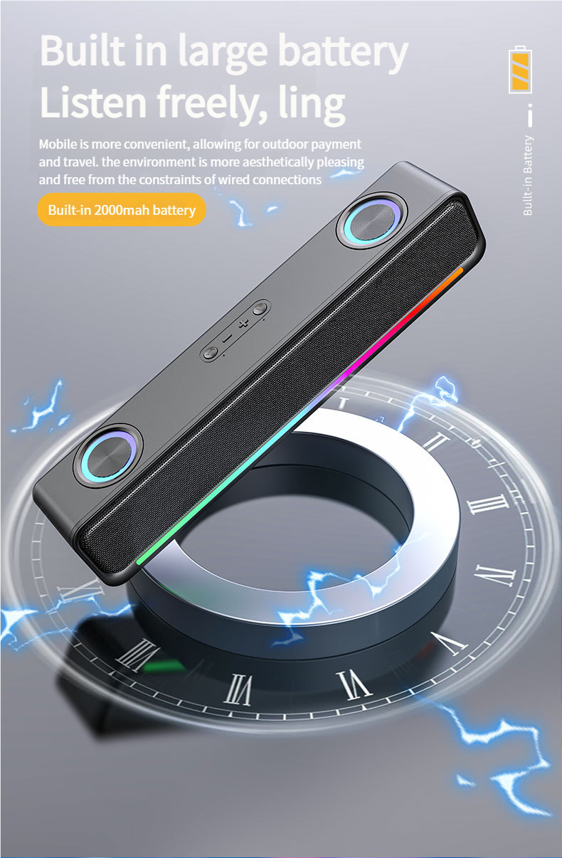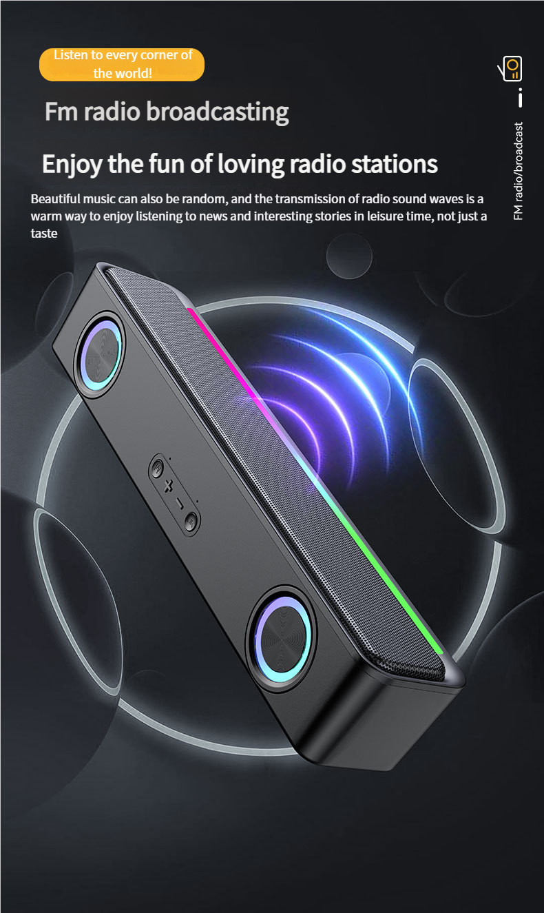 Desktop esports RGB gaming long bar sound bar speaker, wireless card insertion Bluetooth small speaker