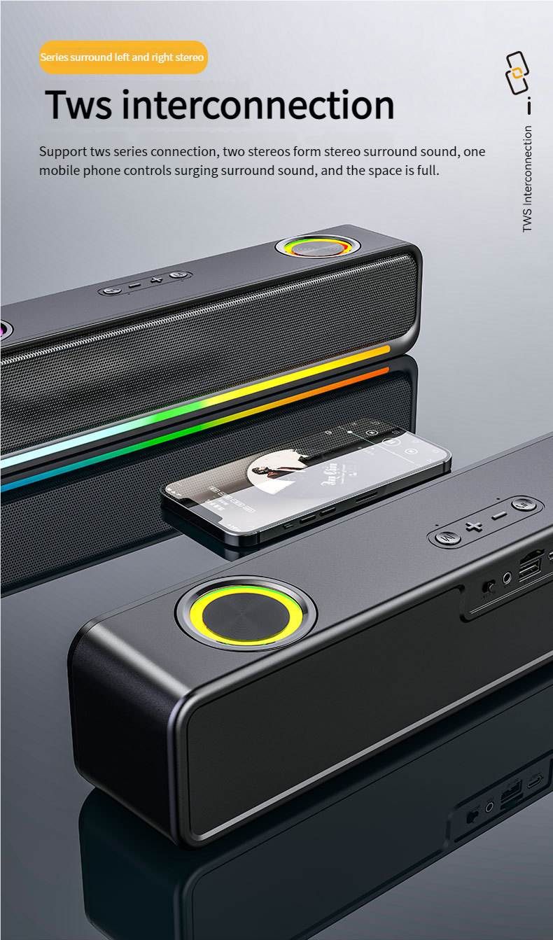 Be the first to review “Desktop esports RGB gaming long bar sound bar speaker, wireless card insertion Bluetooth small speaker” Cancel reply