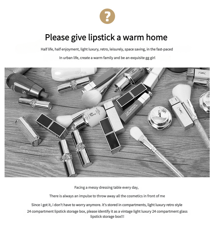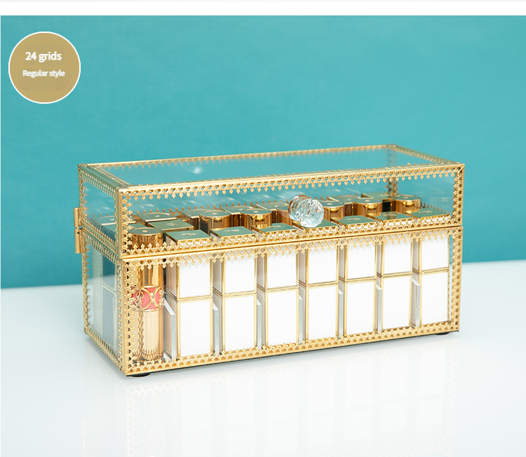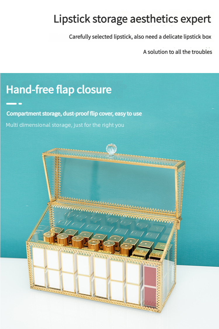Flip-Top Transparent Glass Cosmetic Storage Rack – Multi-Compartment Dustproof Covered Lipstick Storage Box & Lip Gloss/Lipstick Organizer Stand