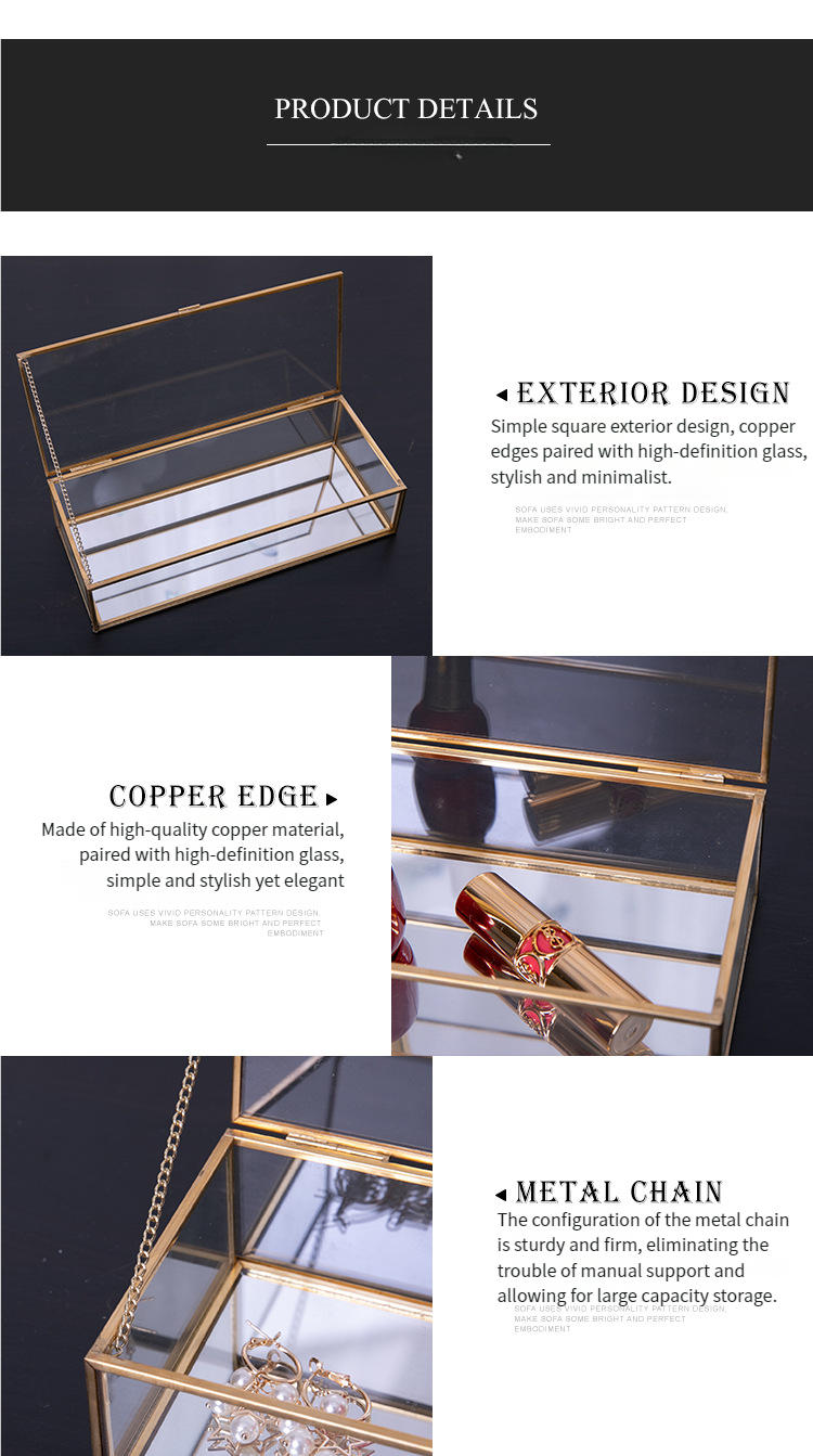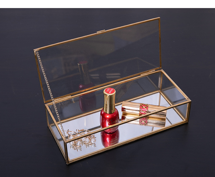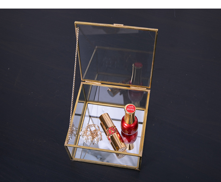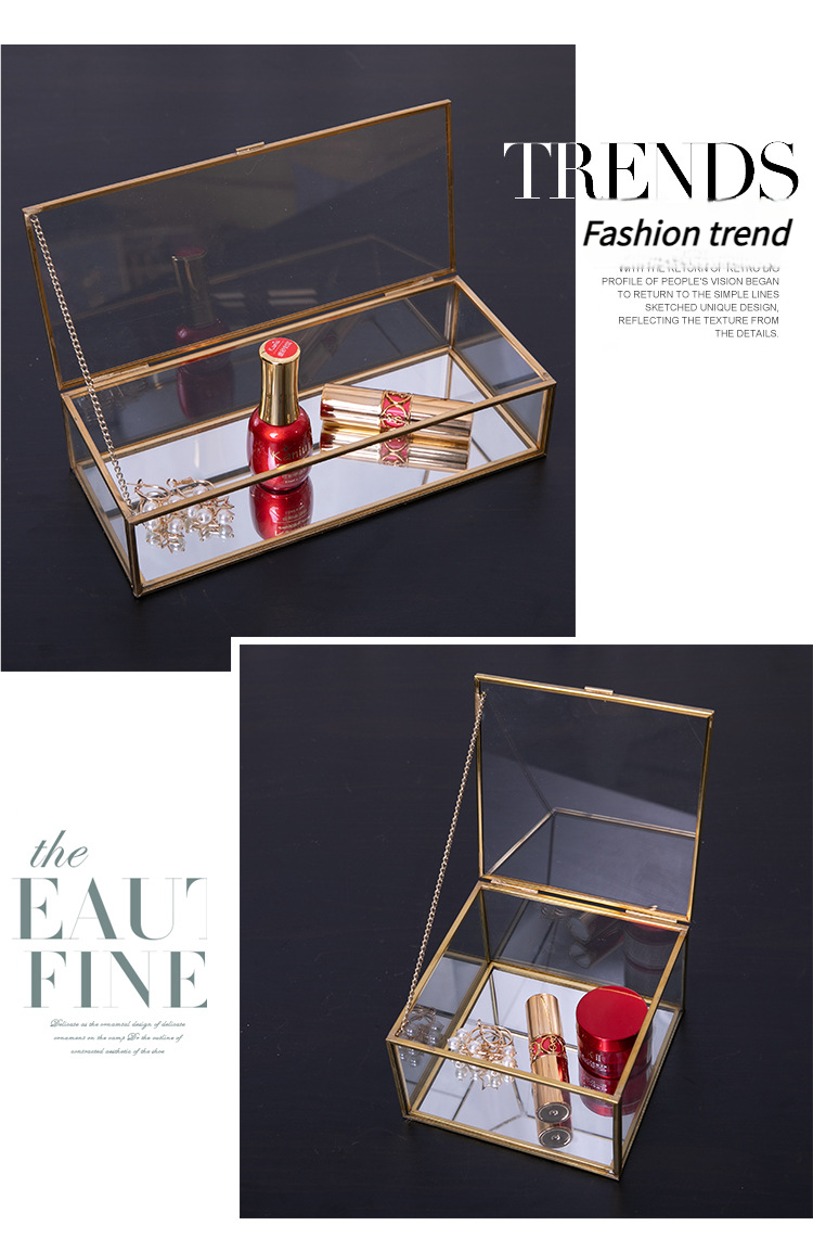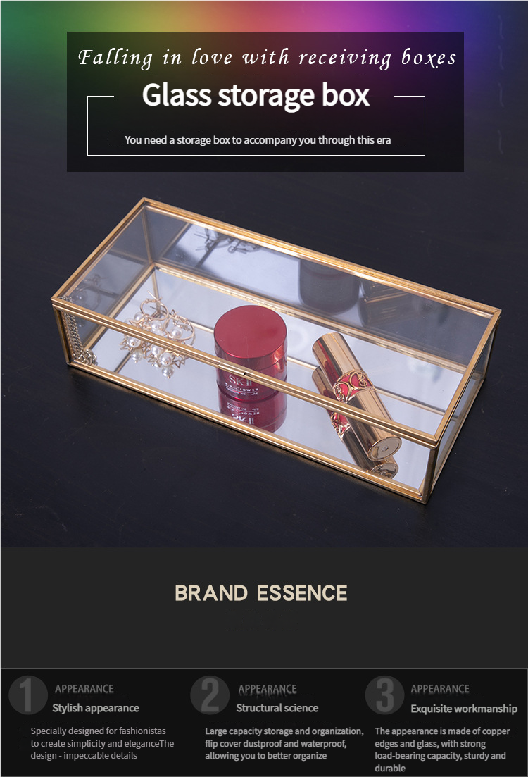 Ins Style Makeup Organizer Box – Wedding Favor Gift Box, Minimalist Decorative Gift Box, Brass & Glass Jewelry Storage Box