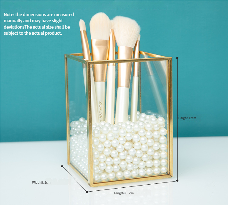 Light Luxury Brass Makeup Brush Holder – Uncovered Transparent Glass Makeup Brush Storage Container & Vanity Desktop Organizer