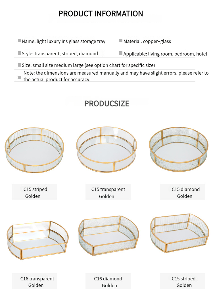 Light Luxury Metal Glass Mirrored Tray – Showroom Decorative Ornament, Dressing Table Top Cosmetic Storage Tray