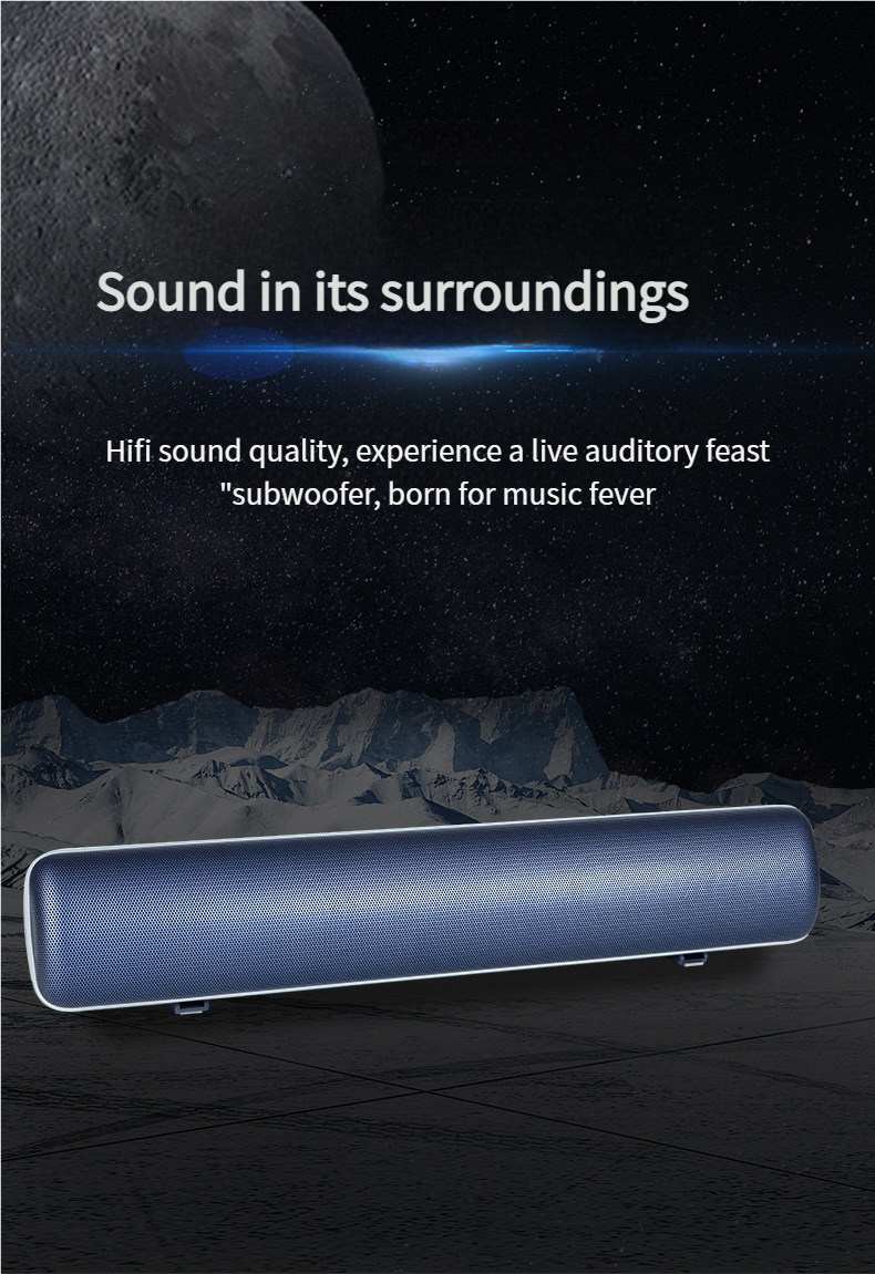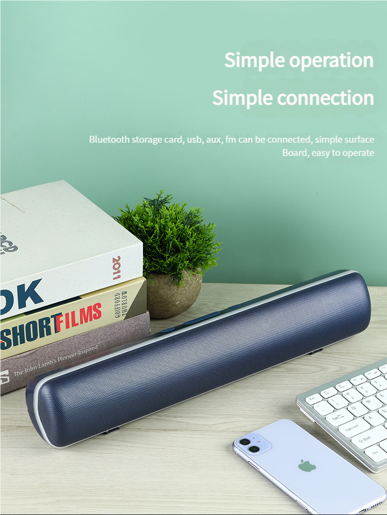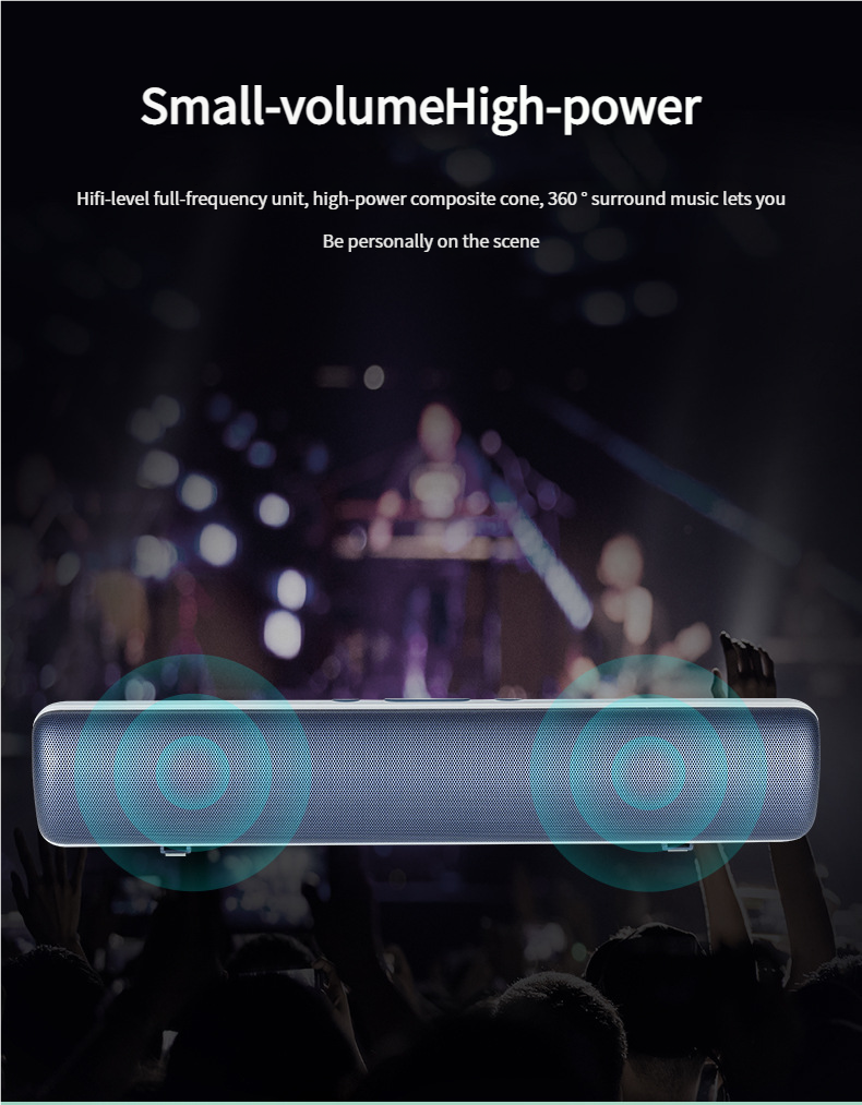 This speaker features a minimalist long – bar design with a silver tone that highlights exquisite texture. It delivers clear and balanced sound quality, supports convenient connection, and is suitable for desktop video – audio, office and leisure scenarios, adding comfort to the listening experience.
