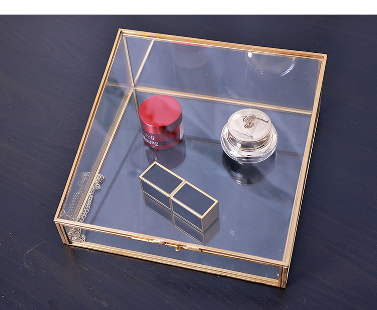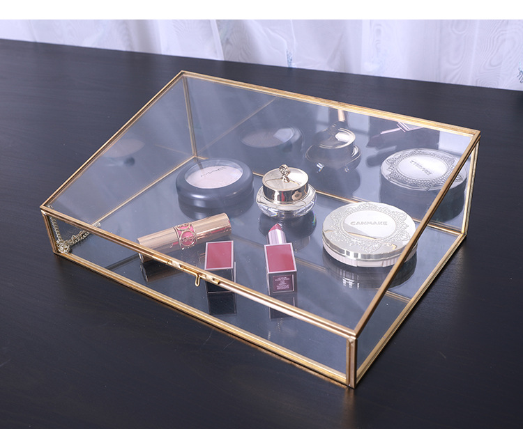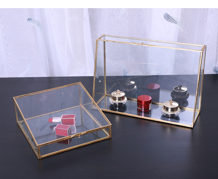 Trapezoidal Brass – Trimmed Glass Storage Box: Dust – Proof Design, Ideal for Makeup, Skincare and Jewelry Storage & Display