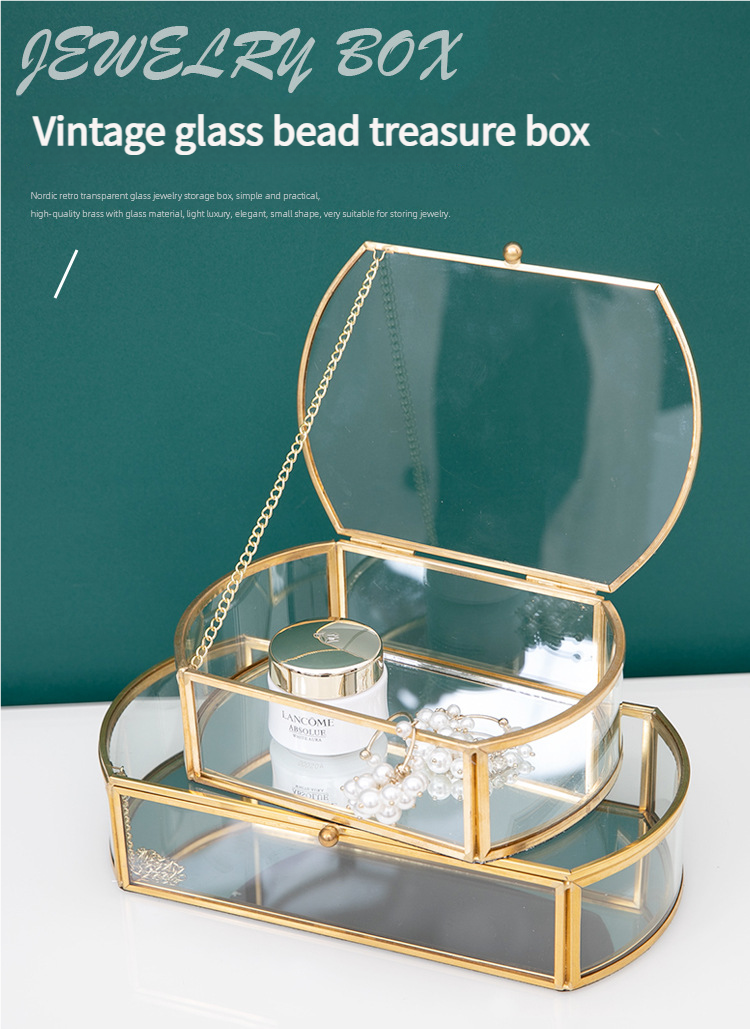 Vintage Luxury Glass Jewelry Storage Box – Dust-Proof Desktop Princess Jewelry Display Box & Accessory Box
